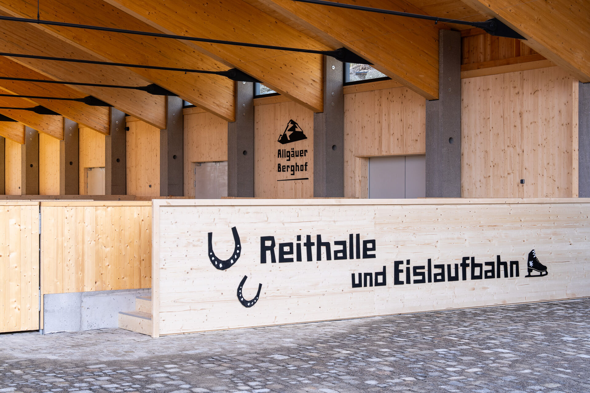 Im Winter wird die vordere Hälfte des überdachten Reitplatzes zur Eisbahn. Kostenloser Schlittschuhverleih und stimmungsvolle Dekoration sorgen für winterliches Ambiente und viel Spaß – garantiert!