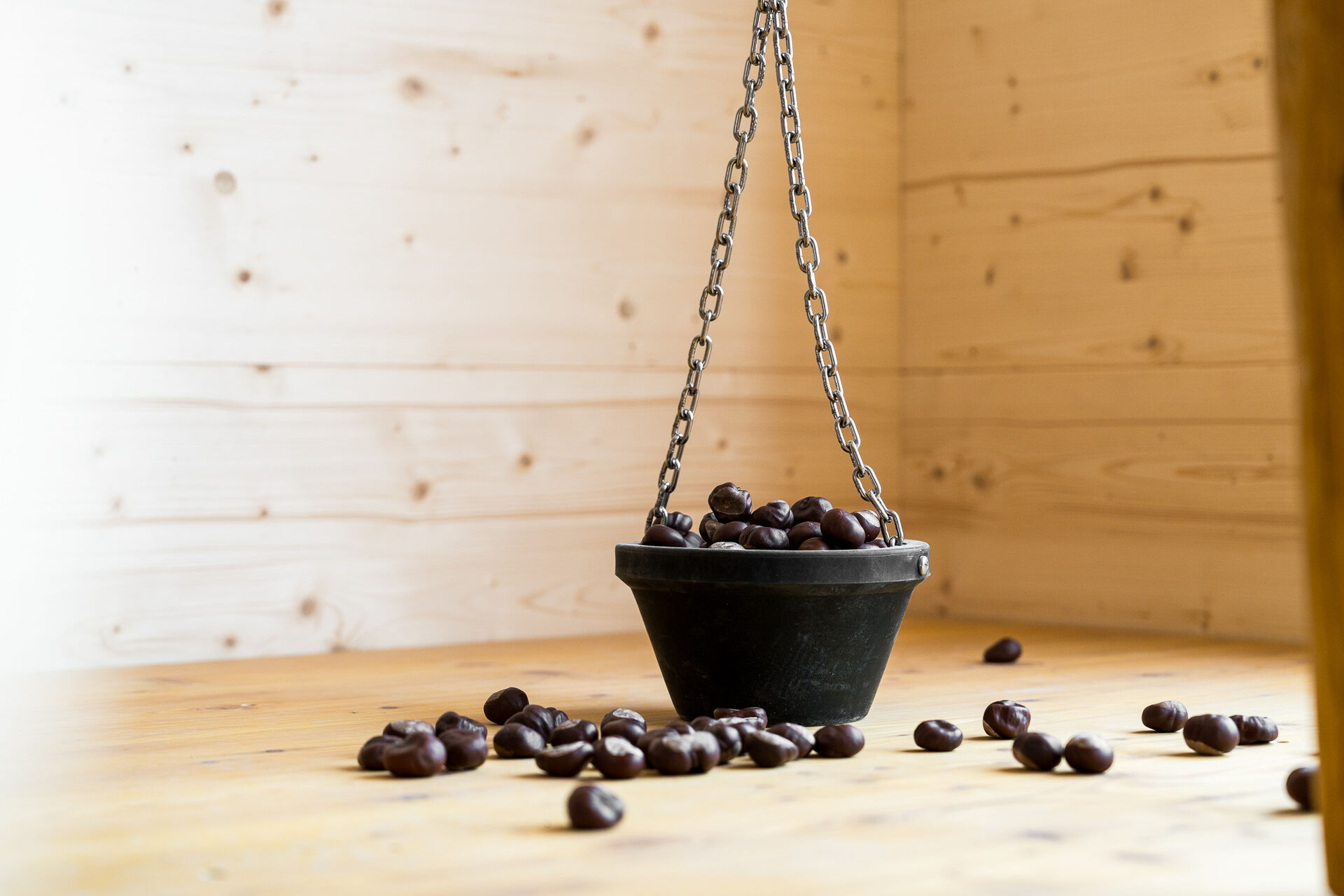 Hier kommt etwas für die jüngsten Gäste – im beheizten Indoor-Spielbereich wartet ein wunderschön gestalteter Holzspielplatz mit zahllosen Kastanien für die Kleinsten. Kleine Kletteräffchen verstecken sich so lange im Kletternetz. Währenddessen genießen Mama und Papa einen leckeren Cappuccino in der gemütlichen Stube