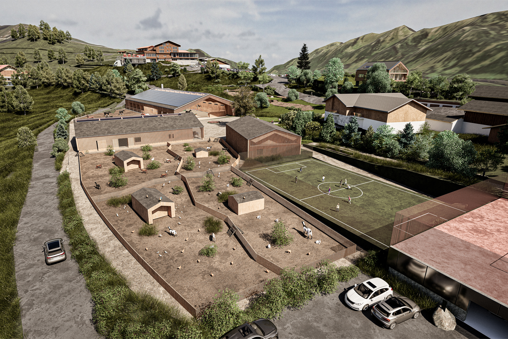 Artgerechte Gehege mit herrlichem Ausblick für die Berghof-Kleintiere. Auch unsere jüngsten Gäste können nun Esel, Hasen, Ziegen sowie Schafe kennenlernen, beobachten, streicheln und im Rahmen der Animation ihren Tierführerschein ablegen.