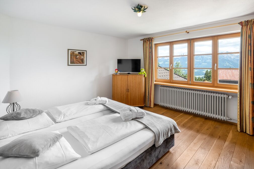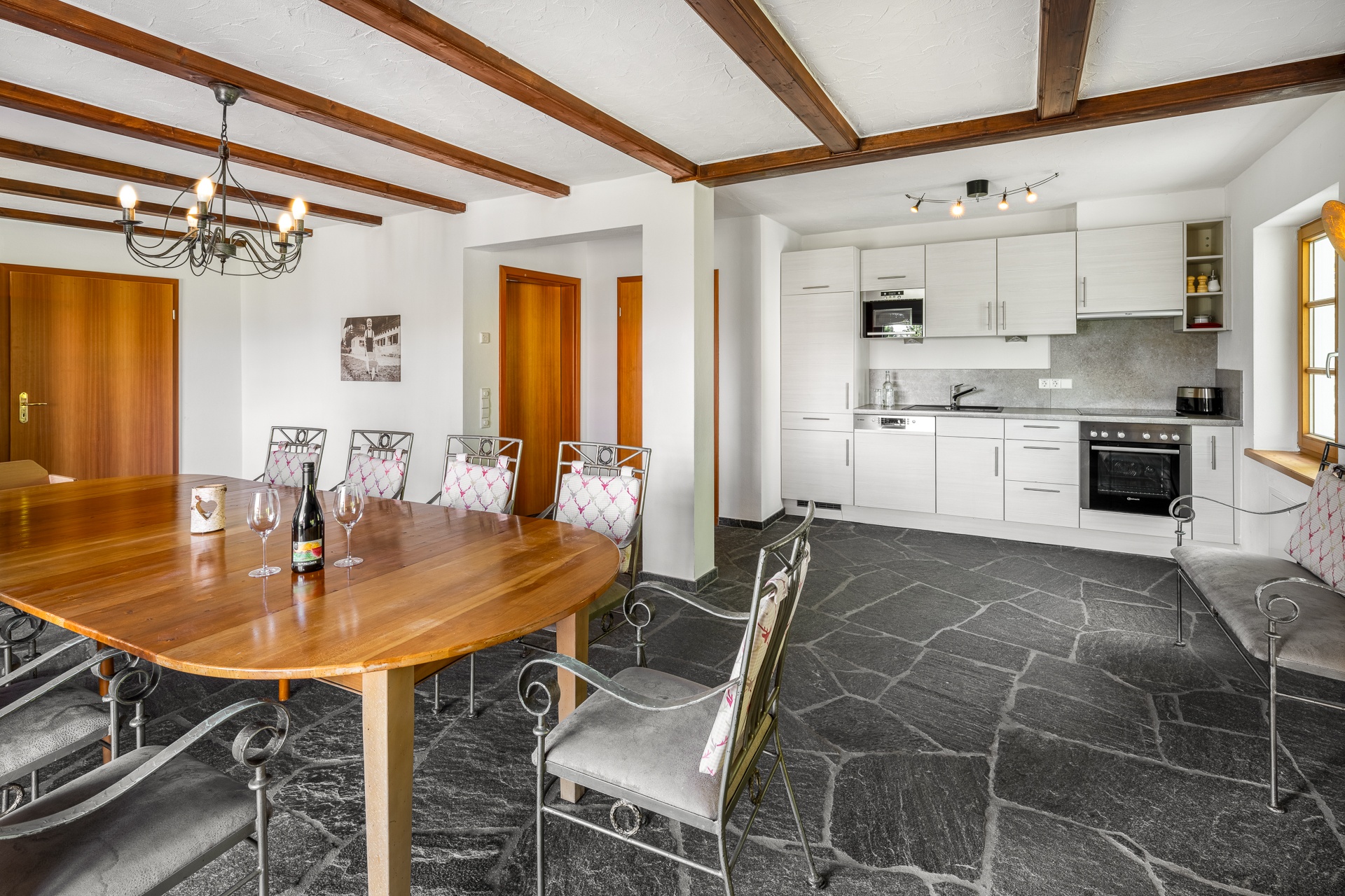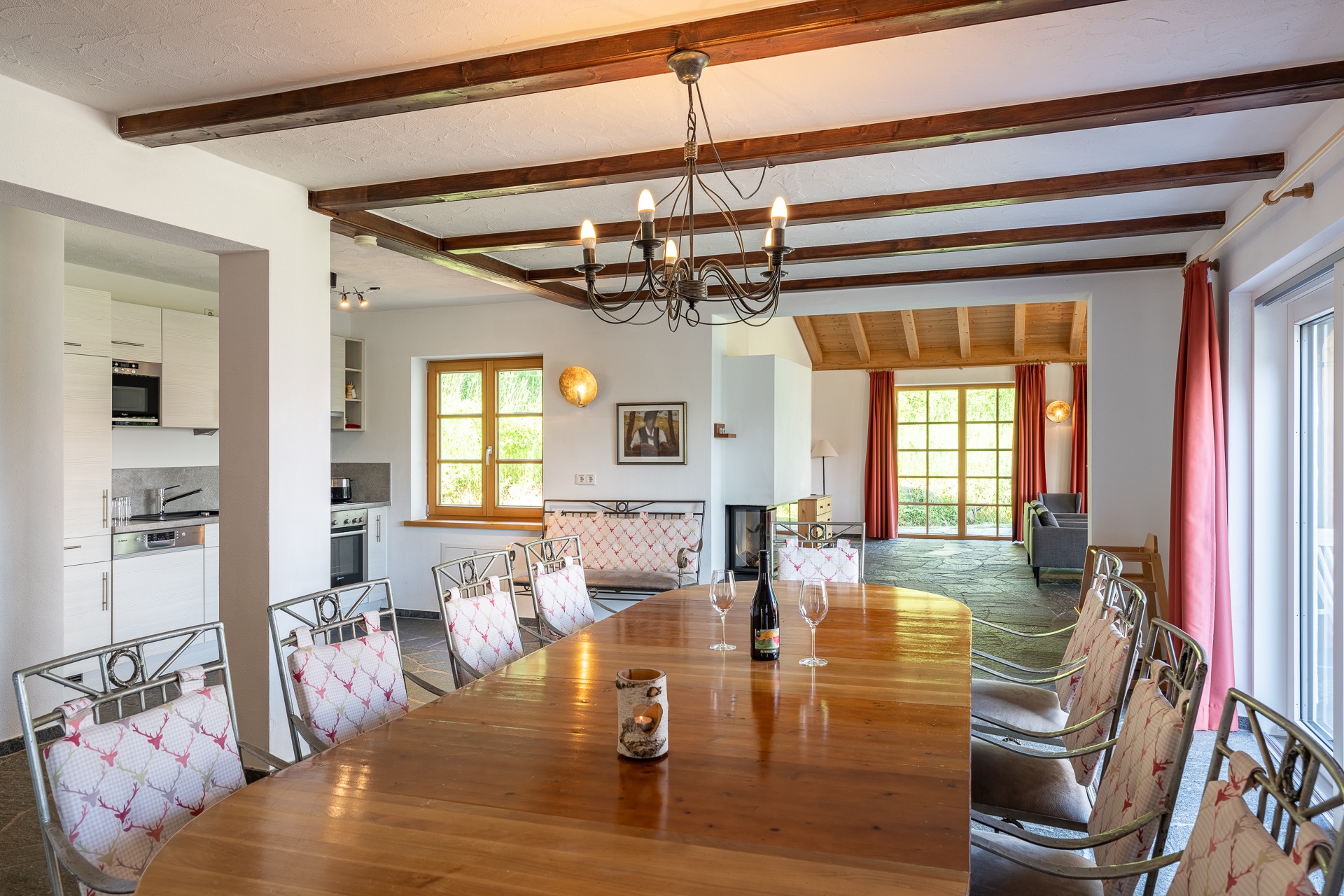 Großzügiges Familien-Chalet über zwei Stockwerke in direkter Nähe zu Streichelzoo und Reitstall. Mit ca. 150 m Entfernung vom Hotel weit genug weg um echter Familien-Rückzugsort zu sein, gleichzeitig nahe genug um jederzeit unkompliziert die komplett Hotel-Infrastruktur nutzen zu können.Eigene Garage, unglaublich großzügiges Wohnzimmer, Esszimmer, zwei Schlafzimmer mit Doppelbett und jeweils genügend Platz für ein zusätzliches Gitterbett, Kinderzimmer mit Stockbett und genügend Platz für ein zusätzliches Gitterbett. Rustikal-gemütliche Einrichtung mit individueller Möblierung.