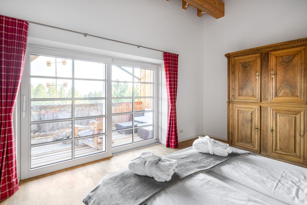 Großzügiges Familien-Chalet über drei Stockwerke in direkter Nähe zu Streichelzoo und Reitstall. Mit ca. 150 m Entfernung vom Hotel weit genug weg, um echter Familien-Rückzugsort zu sein, gleichzeitig nahe genug, um jederzeit unkompliziert die komplette Hotel-Infrastruktur nutzen zu können.Eigene Garage, gemütliches Wohnzimmer mit Kamin, Esszimmer mit großzügiger Küche, drei Schlafzimmer mit jeweils zwei Schlafplätzen, ein Schlafzimmer mit Familienbett (210x270 cm) und jeweils genügend Platz für ein zusätzliches Gitterbett. Modern-gemütliche Einrichtung mit individueller Möblierung.
