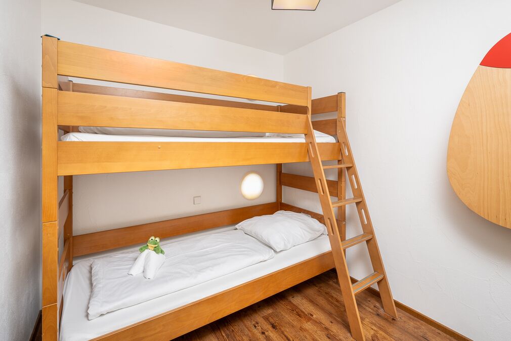 Großzügige Familien-Chalet-Wohnung in direkter Nähe zu Streichelzoo und Reitstall. Mit ca. 150 m Entfernung vom Hotel weit genug weg um echter Familien-Rückzugsort zu sein, gleichzeitig nahe genug um jederzeit unkompliziert die komplett Hotel-Infrastruktur nutzen zu können.Eigene Garage, großzügiges Wohn- Esszimmer, Eltern-Schlafzimmer mit Doppelbett genügend Platz für ein zusätzliches Gitterbett, Kinderzimmer mit Stockbett und genügend Platz für ein zusätzliches Gitterbett. Rustikal-gemütliche Einrichtung mit individueller Möblierung.